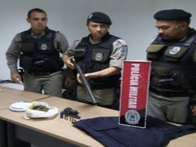 Renata portava duas armas de fogo, sendo uma espingarda calibre 12 e 01 revólver calibre 38, um colete balístico, uma balança de precisão e 200 gramas de substância semelhante a maconha.