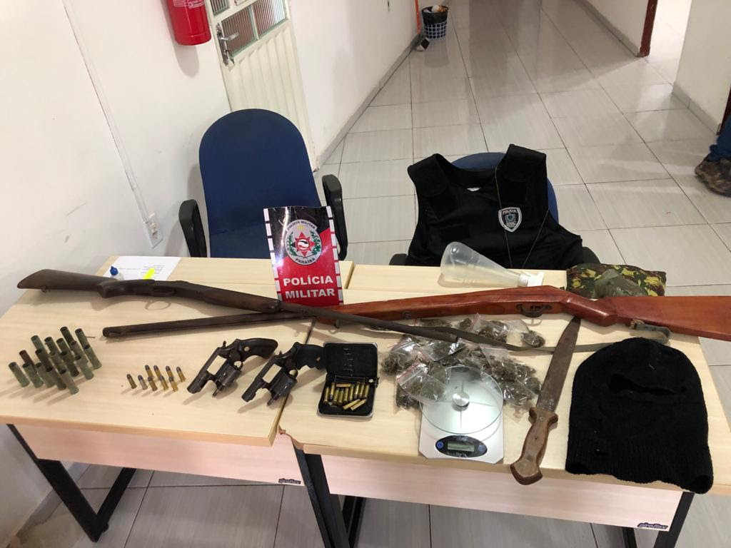 A maior parte do material foi encontrado na casa de dois alvos, em sítios, e onde o proprietário de uma das localidades foi encontrado e preso. Duas espingardas e dois revólveres foram apreendidos, além de munições, cartuchos, e materiais do tráfico como porções de maconha e balança.