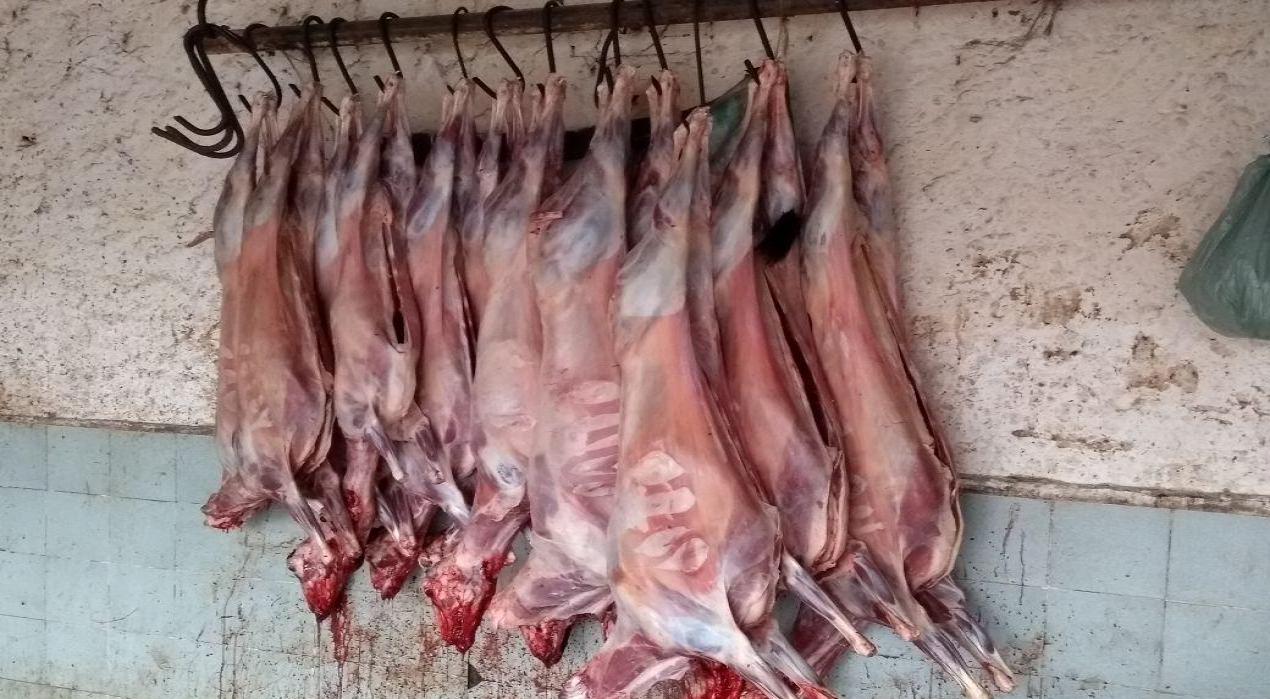 Segundo informações, cerca de 50 animais estavam esperando para sofrerem o abate e na chegada da polícia, um homem estava desossando um animal.