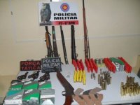 Com José Henrique foram apreendidos: 01 (um) revólver cal. .22 LR de 06 (seis) tiros, 02 (dois) revólveres cal. .38 SPL de 06 (seis) tiros, 25 (vinte e cinco) munições cal. .22 LR, 05 (cinco) munições cal. .38 SPL, sendo 01 (uma) deflagrada, 34 (trinta e quatro) munições cal. 28 Gauge, 33 (trinta e três) munições cal. 32, 21 munições cal. 16 Gauge, 21 (vinte e uma) munições cal. 20 Gauge, 01 (uma) espingarda cal. 12 Gauge, 05 (cinco) espingardas artesanais, 01 (uma) espingarda cal. 28 Gauge, além de vários estojos e espoletas.