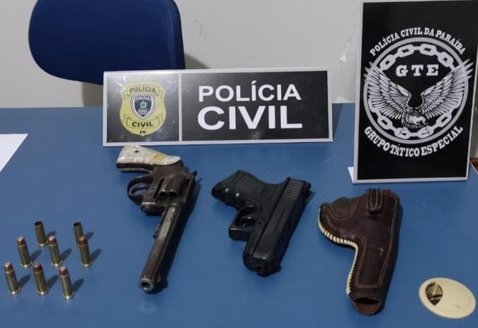 A Polícia Civil da Paraíba prendeu nessa terça-feira, 17 de maio, um homem de 32 anos de idade, que estava com um revólver calibre 38 e um simulacro de pistola. Um adolescente de 17 anos de idade, investigado por participação em roubos na região de Esperança, também foi apreendido.