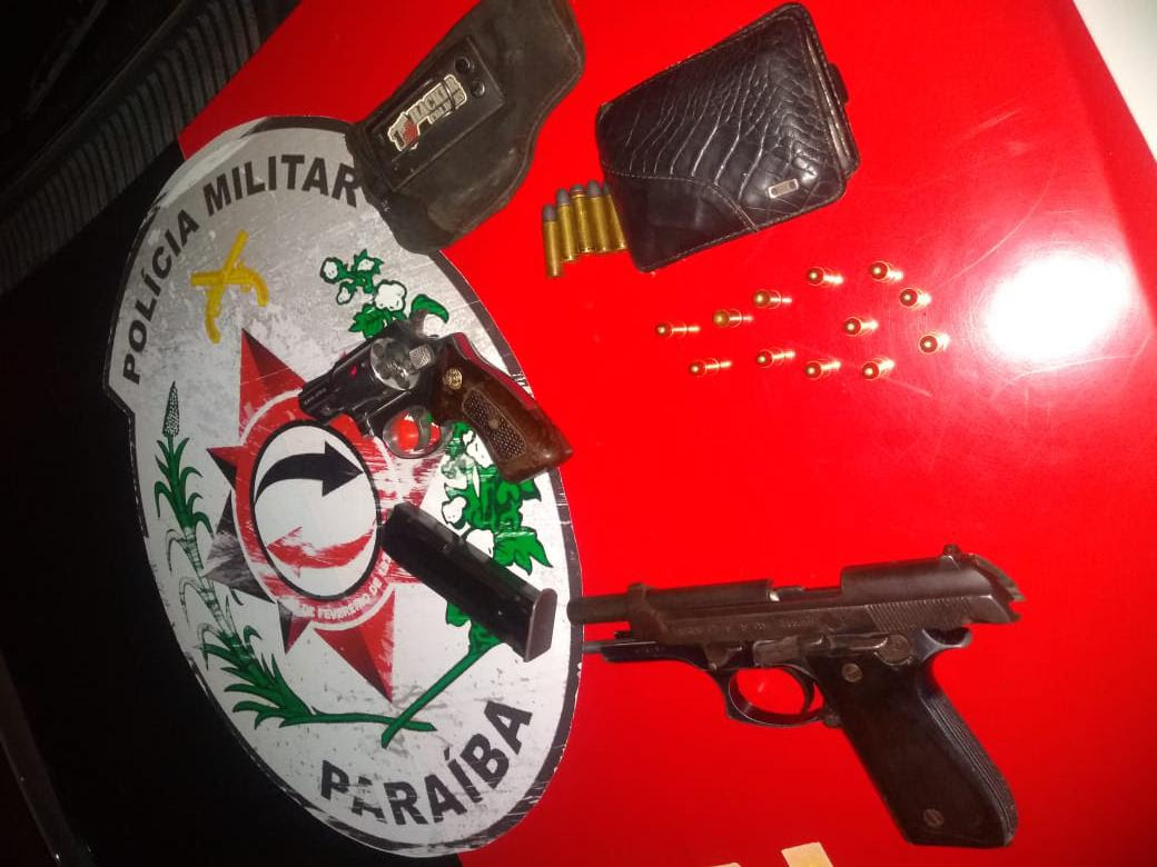 Ainda na noite da sexta-feira, policiais militares do 6º BPM foram solicitados para uma ocorrência de trânsito, nas proximidades do Sítio Cocos, na PB 004, em Cajazeiras. Ao chegar no local, os policiais encontraram o veículo bastante danificado e com os pneus furados. O motorista, de 71 anos, apresentava sinais de embriaguez, que foi constatada com o teste acoolemia. Ao realizarem uma busca no interior do veículo, encontraram uma bolsa com um revólver calibre 38 e uma pistola calibre 765, além de munições. Ainda em Cajazeiras outro acusado foi apreendido com um revólver calibre 38. Os acusados e as armas foram apresentados à autoridade policial.