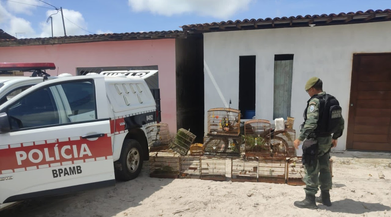 A Polícia Militar resgatou 17 aves silvestres que estavam sendo mantidas em um cativeiro, durante operação realizada na tarde desta quarta-feira (18), na cidade de Mataraca, no litoral norte da Paraíba. Dois homens foram presos em flagrante. Eles foram multados no valor de R$ 8 mil e 500.