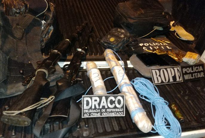 Durante a ação do início da noite, os agentes envolvidos apreenderam armas de grosso calibre, como fuzil, e material explosivo. Houve confronto, e bandidos foram alvejados. A suspeita é que eles integravam uma quadrilha especializada em explosão de agências bancárias na Paraíba e estados vizinhos.