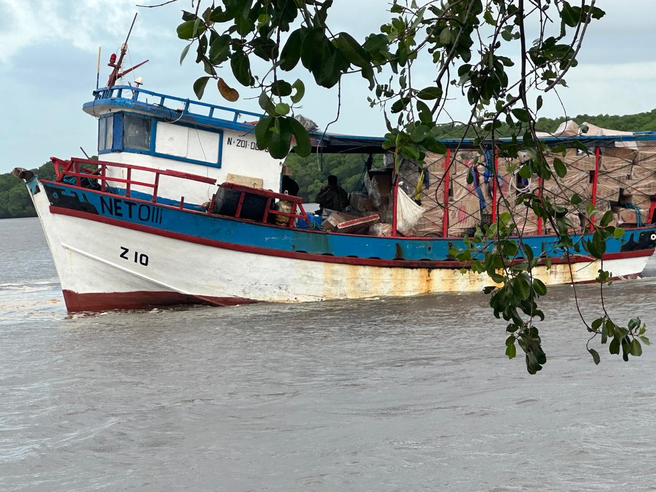 No momento da abordagem, além do barco que fez o transporte da mercadoria, também foram apreendidos dois caminhões onde estavam sendo acondicionadas as caixas de cigarro estrangeiro, um veículo de passeio e o celular do preso.