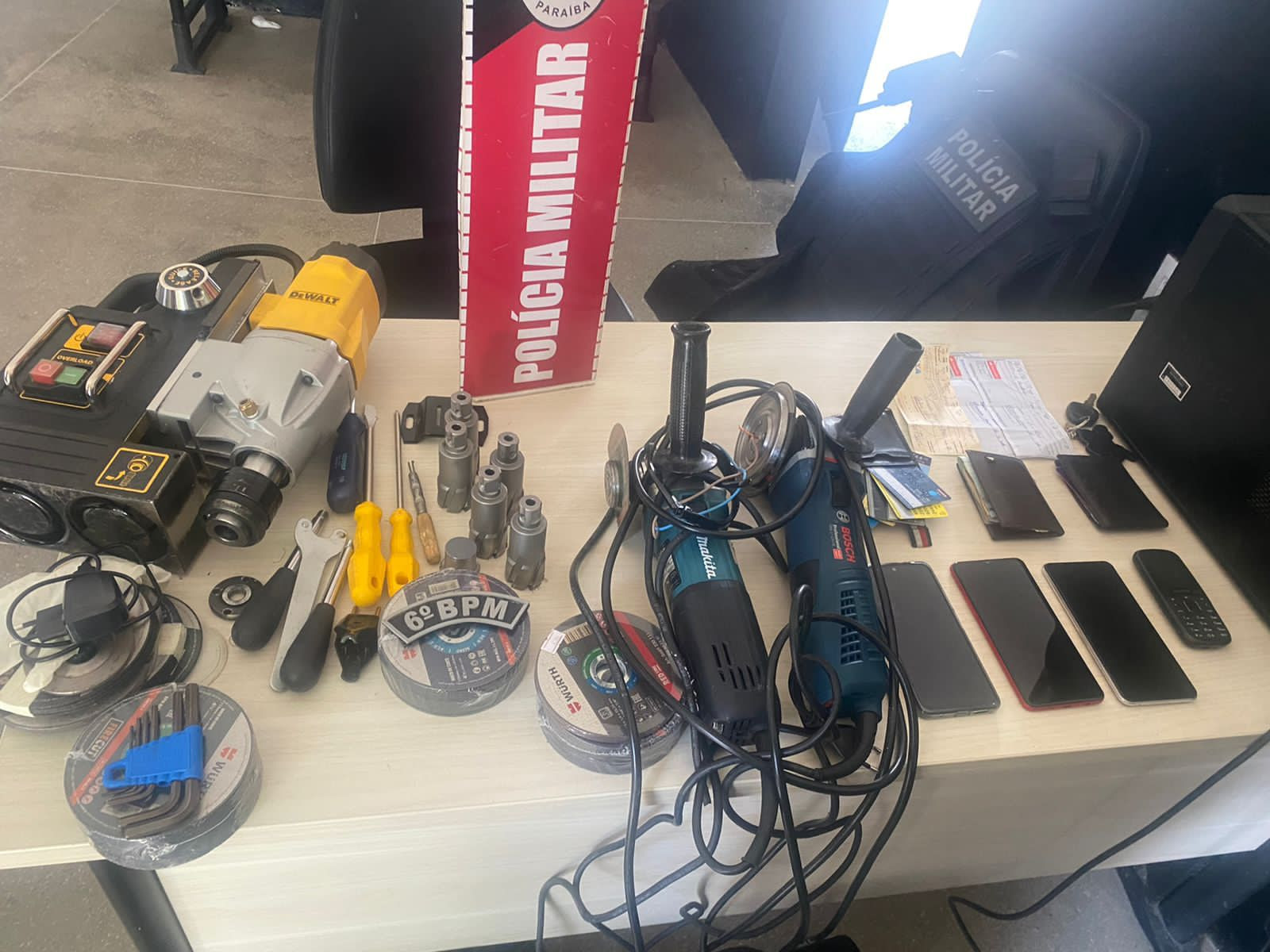 “Com o trio, encontramos vasto material usado nas práticas criminosas contra instituições financeiras, como ferramentas de alto valor aquisitivo, entre elas uma que custava cerca de 8 mil reais, furadeiras, lixas, alicates. Um dos suspeitos presos era do Ceará, e o outro vinha de Pernambuco”, disse o tenente-coronel Terceiro, comandante do 6º BPM.