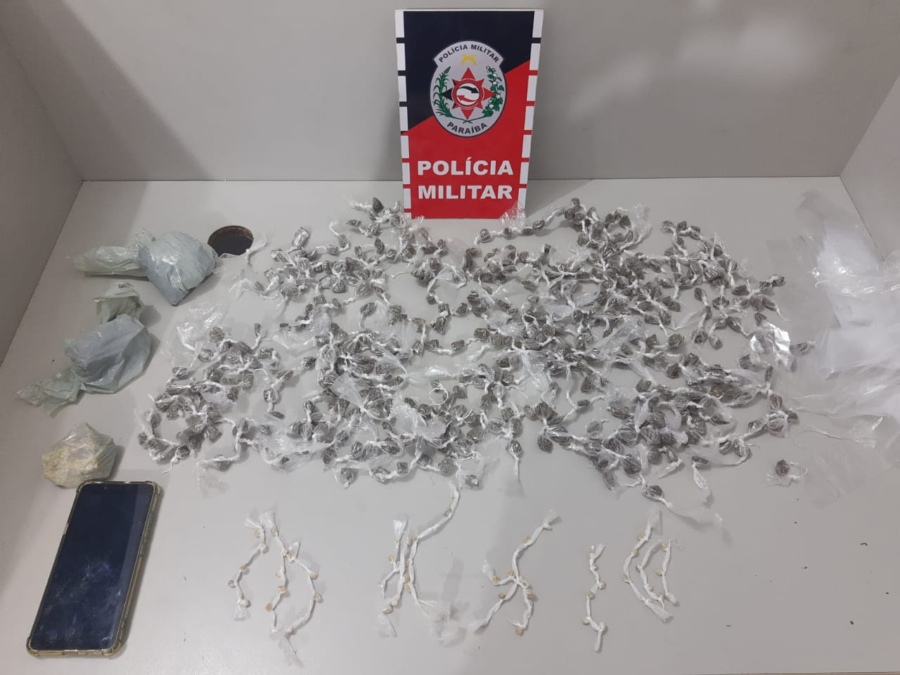Durante outra abordagem, também em Itapororoca, um suspeito que usava uma tornozeleira eletrônica foi preso por tráfico de drogas. Ele estava carregando 440 pequenas porções de maconha, 60 pedrinhas de crack, além de três porções maiores de maconha.