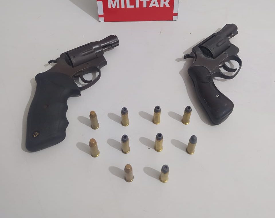 Segundo os policiais da Força Tática da 2ª Companhia Independente, a equipe estava realizando rondas próximo ao Ginásio o Irmão, na PB 041, quando viram dois suspeitos trafegando em uma motocicleta. Os policiais deram voz de parada e durante a busca pessoal os suspeitos disseram que estavam armados. Com os suspeitos, de 19 e 21 anos, foram apreendidos dois revólveres calibre 38 cada um com cinco munições.