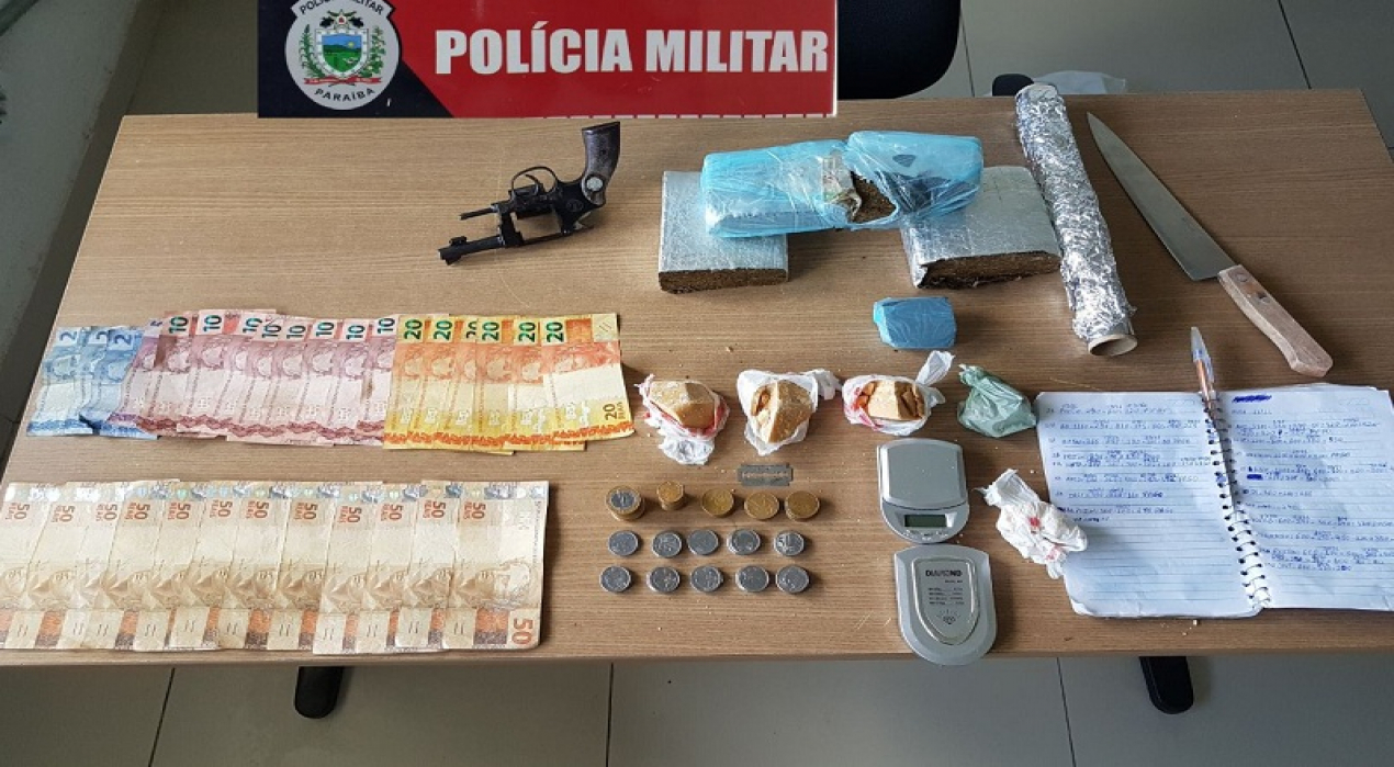 Policiais militares da Força Tática do 1º Batalhão de Polícia Militar prenderam um suspeito de atuar no tráfico de drogas, na manhã deste sábado (16), na comunidade Riachinho, em João Pessoa. O suspeito, de 30 anos, foi preso e com ele apreendidas uma arma de fogo, drogas e uma quantia em dinheiro.