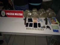A Polícia Militar apreendeu mais de 8 kg de maconha e duas armas de fogo, na madrugada desta terça-feira (30), durante as atividades da Operação Réveillon, na cidade de Itapororoca, no Litoral Norte do Estado. O material estava em um carro que foi interceptado por policiais da 2ª Companhia Independente da PM. Na ação, foram presos Rodrigo Pedro Meirense, de 35 anos; Italo Luan Xavier, 23; e Jamile Justino de Moraes, 23 anos.
