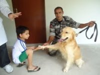 Policiais do Canil do 1º Batalhão de Polícia Militar e profissionais da APAE – Associação de Pais e Amigos dos Excepcionais desenvolveram hoje (16) mais uma sessão de Cinoterapia. É assim que é chamada a terapia feita por uma equipe multidisciplinar com o auxilio de cães.