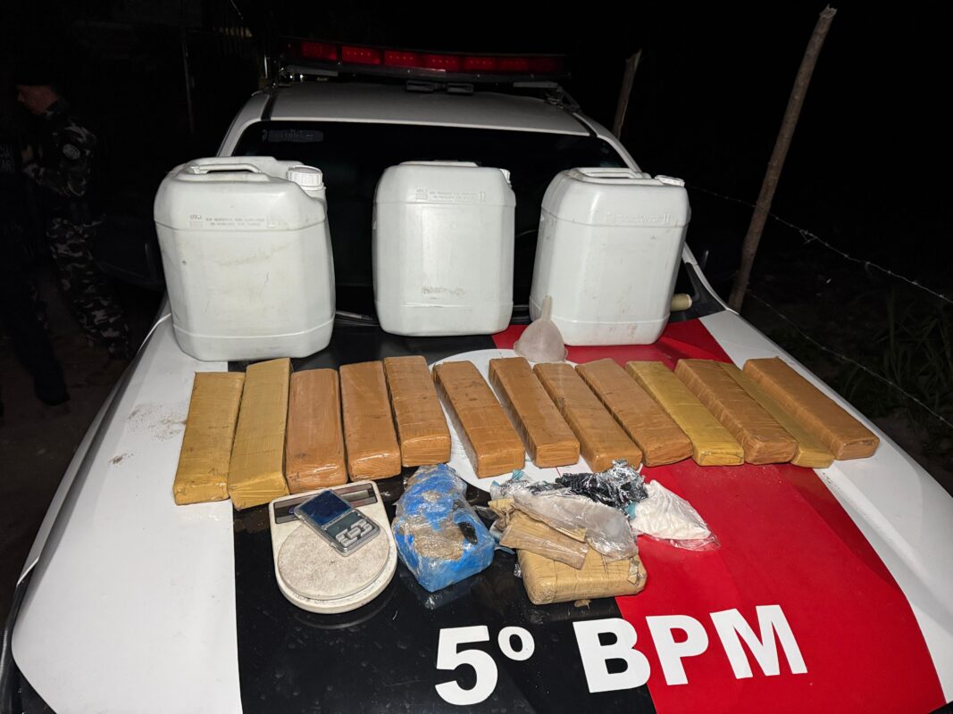O material apreendido pela polícia continha maconha, crack, cocaína e cerca de 60L de substância semelhante à loló.