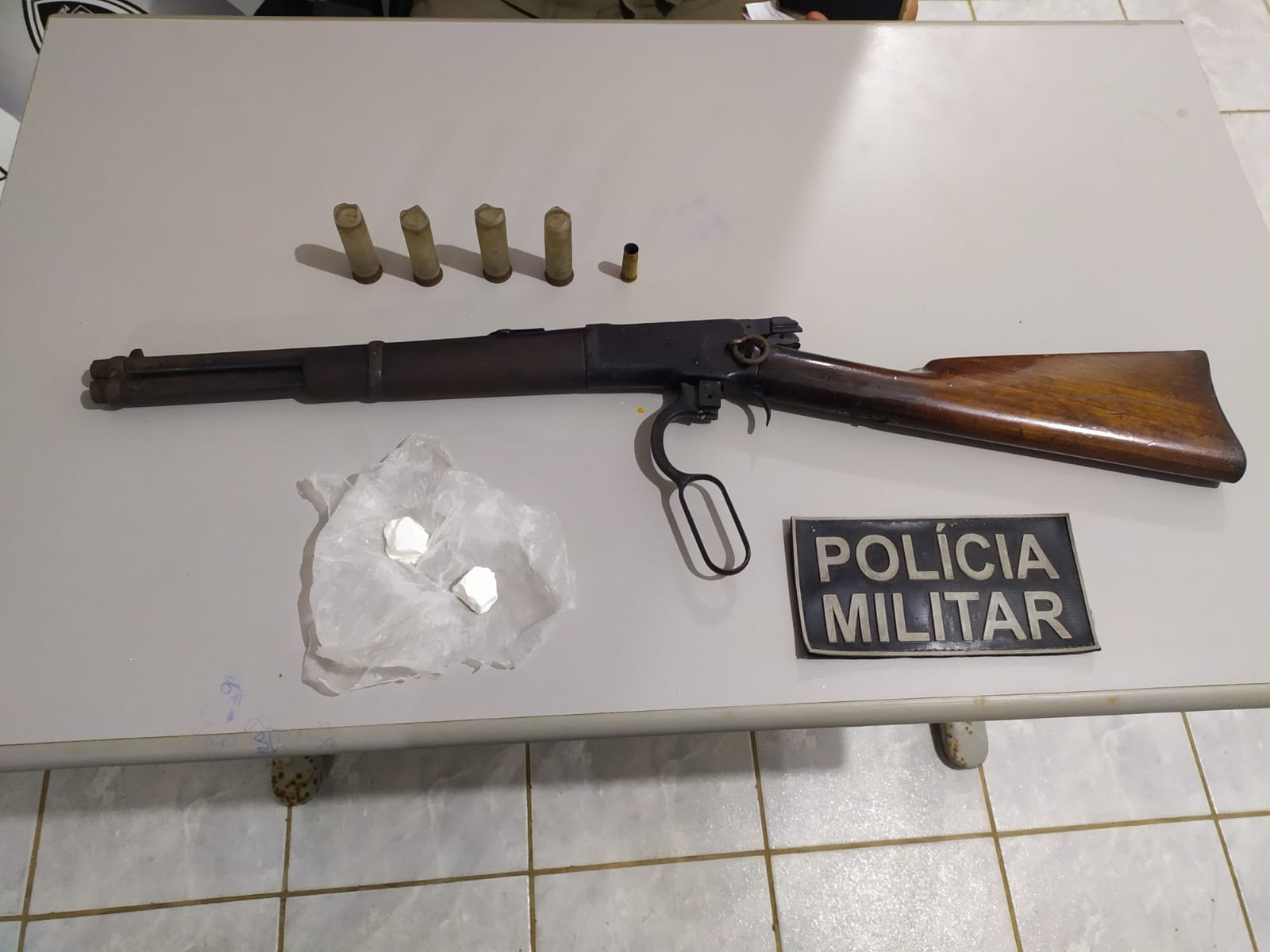A Polícia Militar apreendeu um rifle calibre .44 com um suspeito de 23 anos, na madrugada desta sexta-feira (1º), na cidade de Cruz do Espírito Santo. O preso estaria atuando na segurança do tráfico de drogas, conforme denúncias recebidas pela PM.