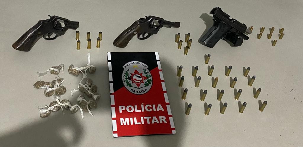 A Polícia Militar começou a semana com a apreensão de três armas de fogo, desarticulação de um ponto de tráfico de drogas e a prisão de dois suspeitos que estavam aterrorizando moradores na cidade de Gurinhém, município que fica a cerca de 80 quilômetros de distância de João Pessoa. A ocorrência policial foi registrada no fim da tarde dessa segunda-feira (26).