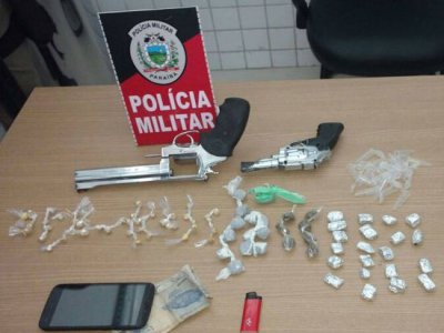 A Polícia Militar apreendeu dois revólveres, 41 trouxas de maconha, 46 pedras de crack e vários recipientes para armazenar cocaína para a venda, durante mais uma ação de combate ao tráfico de drogas, na tarde desta quinta-feira (26), na comunidade Santa Emília de Rodat, no bairro do Varadouro, em João Pessoa.
