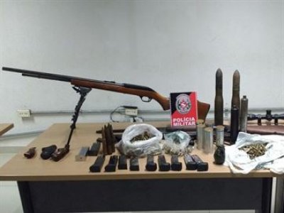 Entre os objetos apreendidos também estavam rifles de precisão, uma espingarda de calibre .50 e uma granada, bombas de efeito moral, carregadores de pistola e munições de diversos calibres.