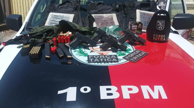 Em operação na Comunidade Porto do Capim, no bairro do Varadouro, no fim da manhã desta quarta-feira (30), em João Pessoa, a Polícia Militar, por meio da Força Tática do 1º Batalhão, apreendeu quatro pistolas, carregadores, munições, coletes balísticos e outros materiais de uma organização criminosa que seria responsável por vários assassinatos na cidade de Cabedelo.