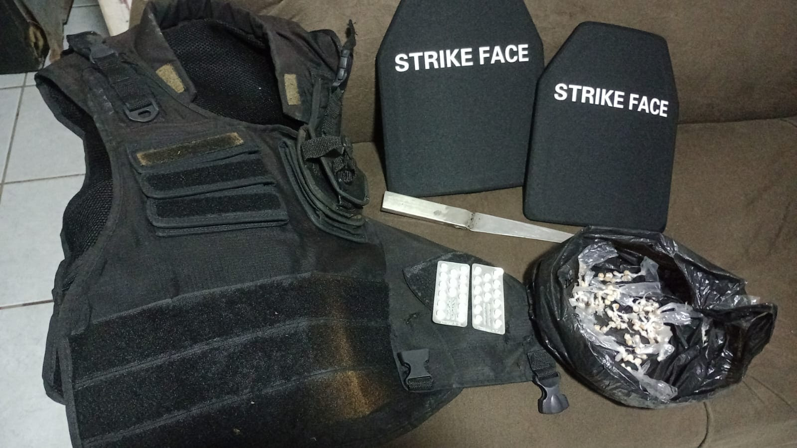 A Polícia Militar apreendeu 90 pedras de crack, 30 comprimidos entorpecentes e um colete balístico com placa de proteção em cerâmica, nessa quarta-feira (26), em uma ação contra o tráfico de drogas, perto do Mercado Público, no centro de Bayeux.