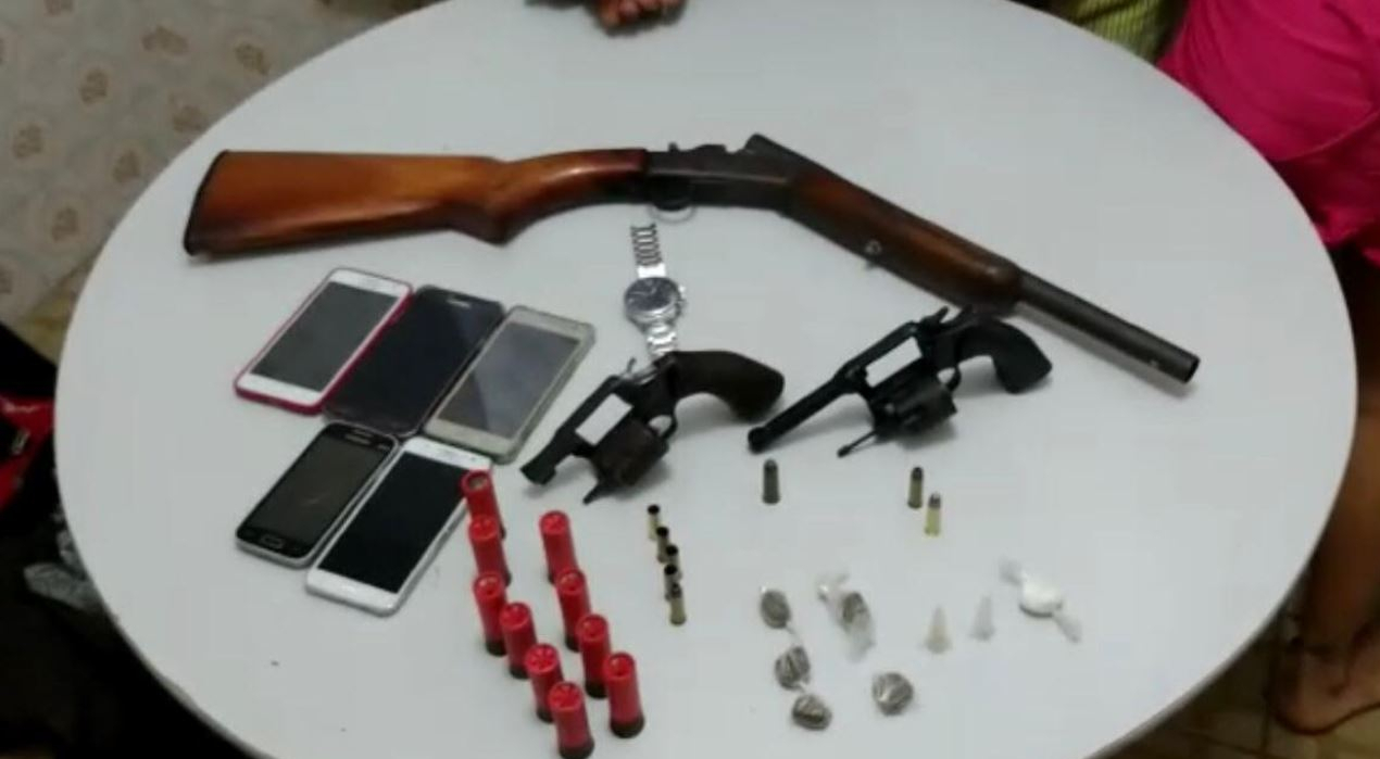 Uma quadrilha que vinha atuando no tráfico de drogas e praticando arrastões a pessoas e mercadinhos, nas cidades de Capim, Rio Tinto e Mamanguape, no Litoral Norte da Paraíba, foi toda desarticulada, na madrugada desta terça-feira (26), em uma ação da 2ª Companhia Independente da PM. Com o bando – formado por uma mulher de 29 anos, uma adolescente de 17, dois jovens de 16 e o líder, de 24 anos – foram apreendidas três armas de fogo, munições, trouxas de maconha e embalagens com cocaína.