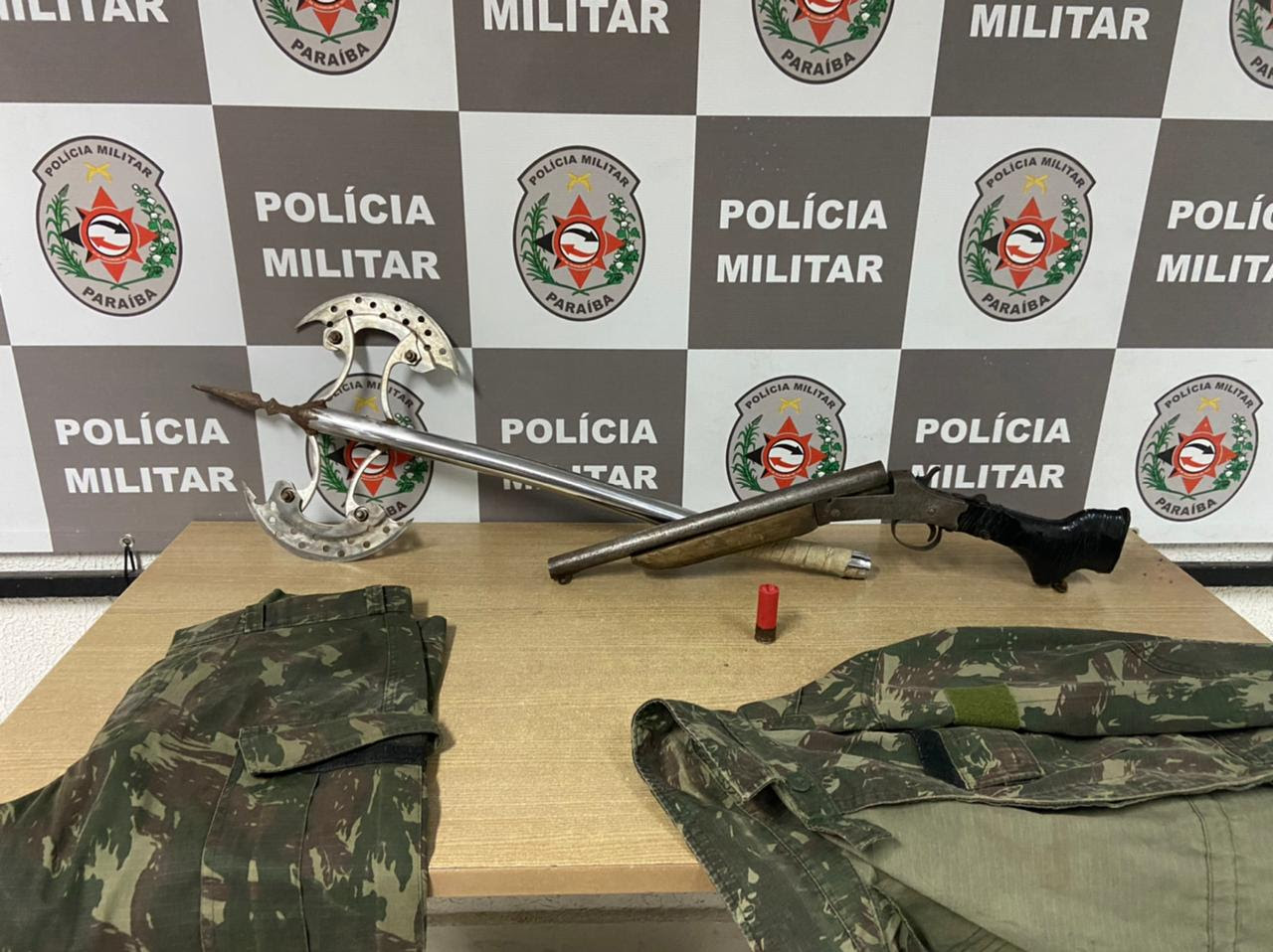 A Polícia Militar apreendeu uma espingarda de fabricação caseira e um machado que seria usado em um assassinato, na comunidade Beira da Linha, na noite dessa terça-feira (20), no bairro do Alto do Mateus, em João Pessoa. A PM foi ao local depois que recebeu denúncias sobre o grupo que estaria planejando o crime.