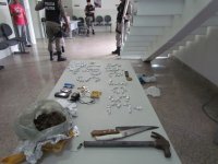Além da droga, a polícia apreendeu facas, dinheiro, celulares e um martelo