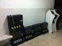 encontradas duas máquinas grandes de caça-níqueis, sendo uma pornográfica.