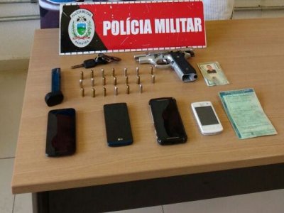 Ao realizar a abordagem ao homem de 21 anos junto com um adolescente de 17 anos, foram encontrados uma pistola calibre 380 com 20 munições e ainda quatro celulares produtos de roubos.