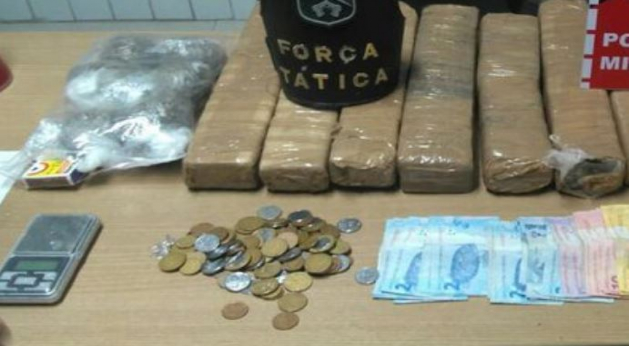 Com base em informações repassadas pela Coordenadoria de Inteligência da PM, a Força Tática do 1º BPM encontrou, além de drogas, mais de 1 mil reais em dinheiro.