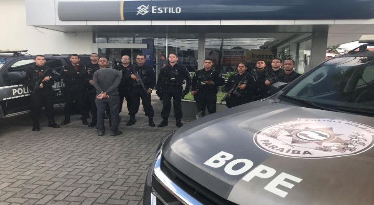A Polícia Militar frustrou uma ação contra a agência do Banco do Brasil, na Avenida Epitácio Pessoa, no início da manhã deste domingo (20), na Capital, e prendeu em flagrante um suspeito do Rio Grande do Norte, de 32 anos, após equipes da 1ª Companhia de Policiamento de Choque do Batalhão de Operações Especiais (Bope) cercarem o local. Com o acusado, foi apreendido um revólver, colete balístico e todo o material que ele estava usando para tentar arrombar o cofre da agência.