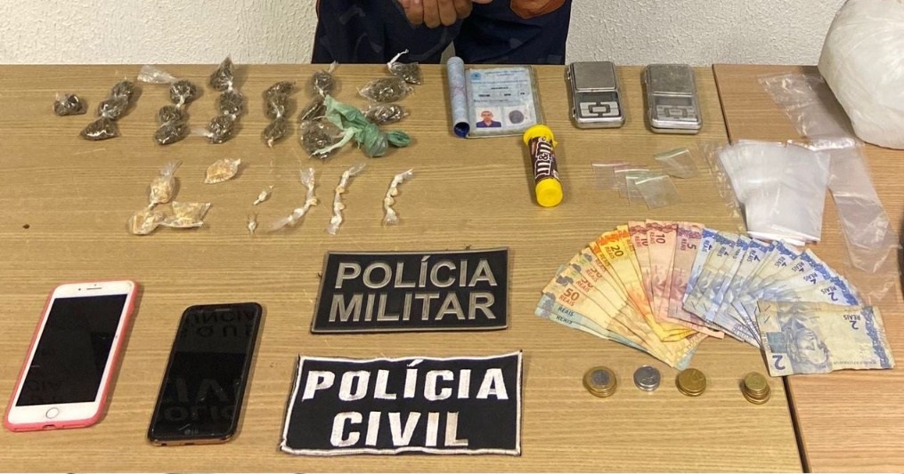 Além da prisão por tráfico de drogas, a Polícia Civil deu cumprimento a Mandado de Prisão Preventiva contra o suspeito por envolvimento no assassinato de um Agente Penitenciário.