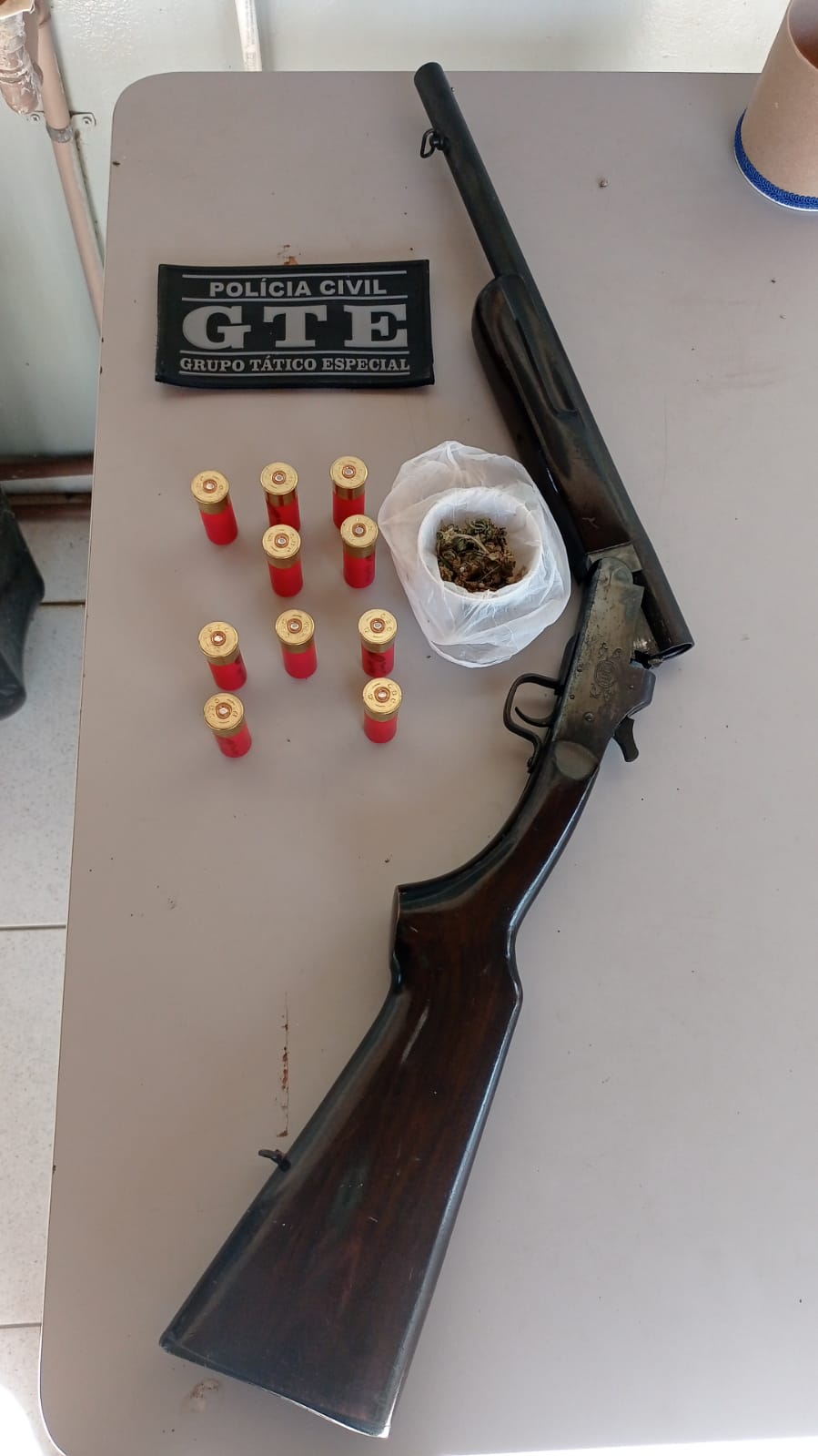 Durante as diligências, os policiais apreenderam uma escopeta calibre 12 e várias munições que teriam sido roubadas no município de Santa Cruz do Capibaribe, há cerca de um ano. Ele ainda apresentou documentação falsa quando foi abordado pelos investigadores, na tentativa frustrada de não ser capturado.