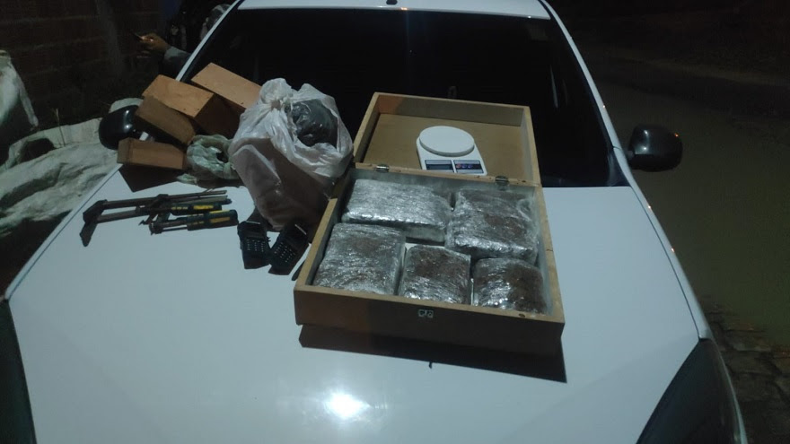 Após a prisão dele, as equipes da Força Tática do 2º Batalhão foram até uma casa em construção, no bairro do Ligeiro, onde o suspeito disse que tinha passado o dia separando e prensando maconha. Na ação, foram apreendidos seis tabletes grandes de maconha já prensada, três sacolas com a droga para serem tratadas, restos de pés de maconha, balança de precisão, um carro, dois rádios comunicadores e outros objetos que seriam usados no esquema criminoso.