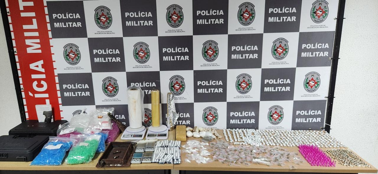No local, foram apreendidos um tablete com 1kg de maconha, cerca de 2 mil porções de drogas prontas para venda, além de um pó branco não identificado. Diversos materiais como balanças de precisão, facas, estiletes, espátulas, uma prensa hidráulica e embalagens para acondicionamento de drogas também foram encontrados.