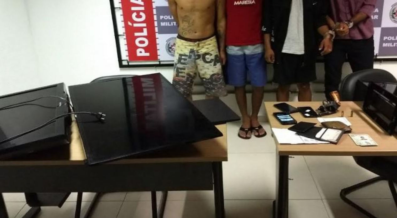 Em uma residência que seria de um dos detidos, os PMs encontraram ainda TVs, notebook e celulares que seriam produtos dos furtos.