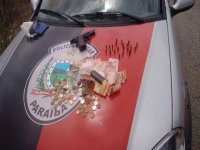Com os suspeitos foram encontrados também a pistola calibre 7.65, utilizada no roubo, e 22 munições, a motocicleta roubada após o assalto e a motocicleta em que chegaram, que também era roubada.
