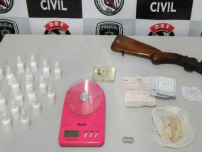 A Polícia Civil da Paraíba, por meio do trabalho investigativo da Delegacia de Repressão a Entorpecentes (DRE) de Campina Grande, desarticulou, nesta terça-feira (6), um ponto de venda de drogas no bairro da Palmeira. A ação aconteceu por volta das 11h, após denúncias recebidas pelo 197 – Disque Denúncia da Secretaria da Segurança e da Defesa Social, e resultou na apreensão de pedras de crack, frascos de ‘loló’, uma espingarda calibre .31, balança de precisão, sacos de plástico usados para a embalagem dos entorpecentes.
