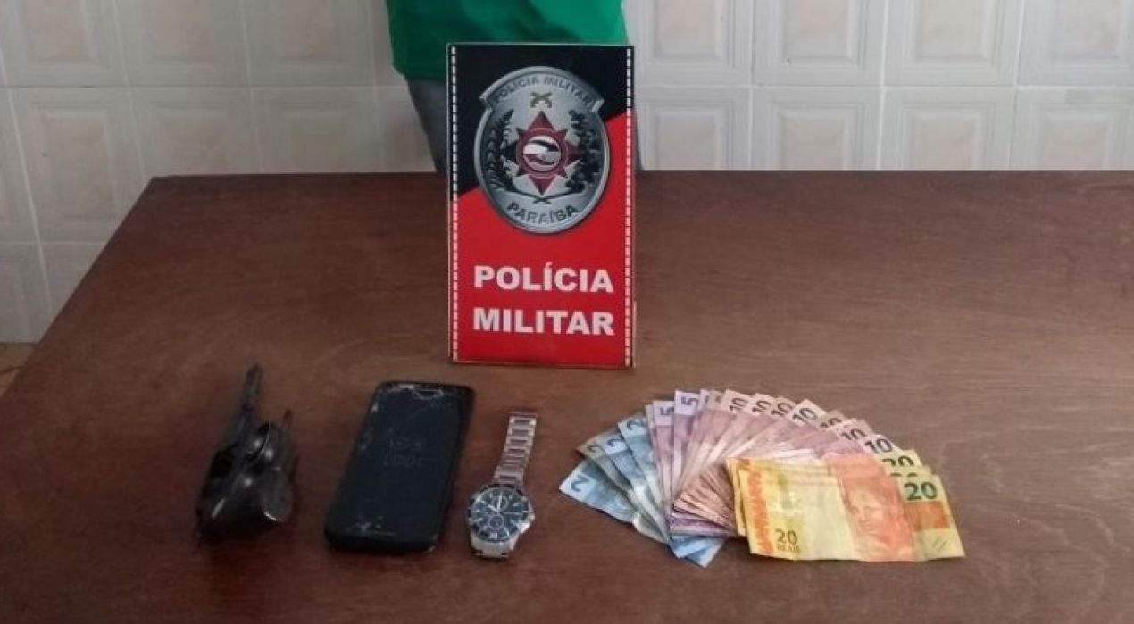 A Polícia Militar prendeu um rapaz suspeito de realizar um roubo em uma farmácia, no bairro da Prata, em Campina Grande, na manhã desta sexta-feira (5). Com ele, os policiais apreenderam uma arma de fogo, recuperaram um celular, dinheiro e relógio roubados das vítimas.
