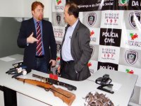 Dentro do veículo usado na ação criminosa, a Polícia conseguiu apreender um fuzil calibre 762, uma espingarda calibre 12, uma pistola .40, uma pistola 8mm e ainda grampos usados para fugas e outros materiais. “Nós estamos investigando esses criminosos e possivelmente eles integram uma quadrilha bem maior e especializada no crime organizado, incluindo explosões de instituições bancárias. O preso que está no hospital, assim que tiver condições será interrogado e nós conseguiremos mais informações sobre atuação do grupo”, finalizou o delegado Allan Terruel.