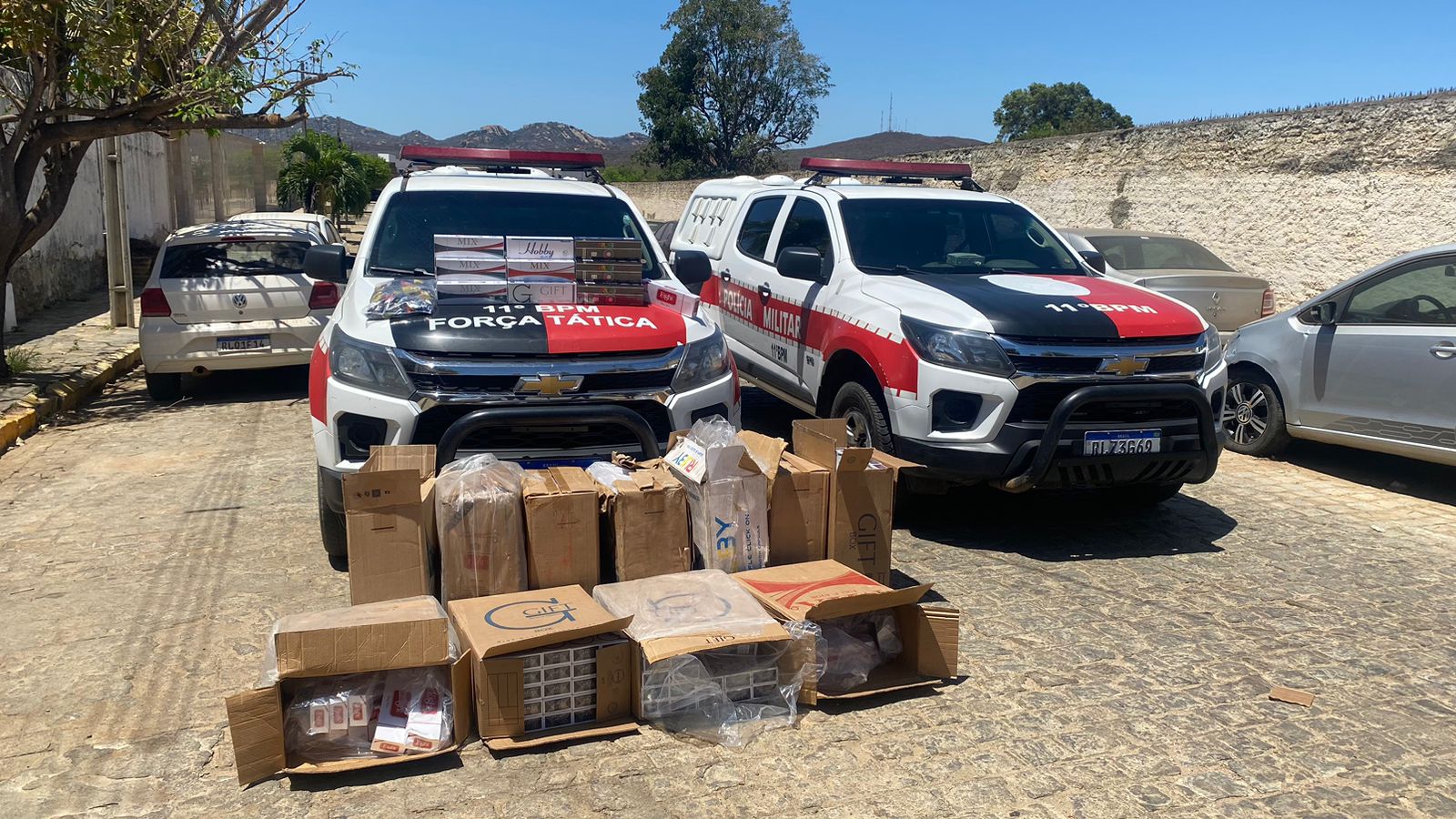 A Polícia Militar interceptou uma carga contrabandeada de cigarros do Paraguai e prendeu, pela terceira vez, o principal acusado do crime. A ação aconteceu nesta terça-feira (24), no município de Monteiro, no Cariri do estado. Mais de 400 maços de cigarros foram apreendidos.