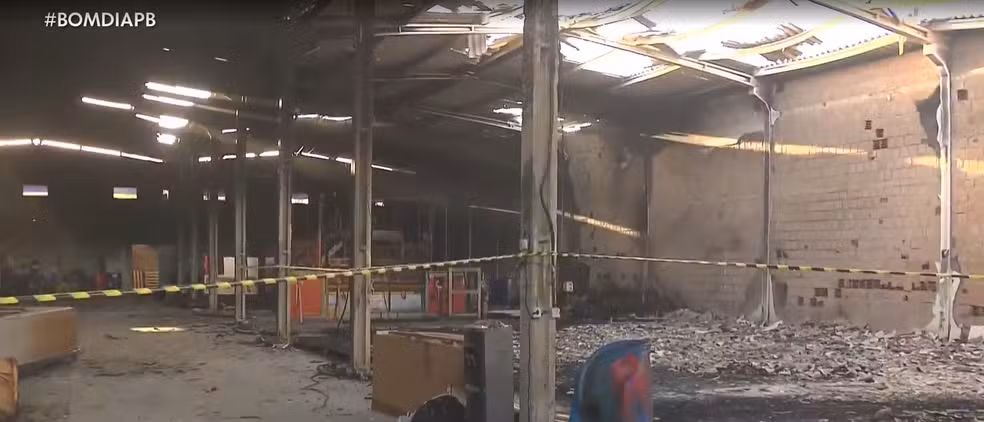 Uma parte do teto da fábrica foi completamente destruído pelo calor das chamas, e algumas vigas de concreto chegaram a entortar.