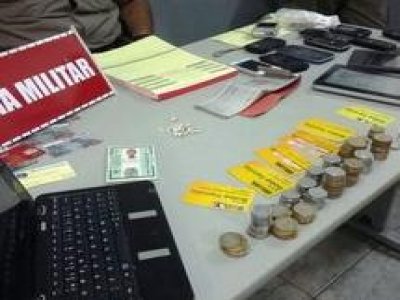 Com os acusados, os policiais encontraram várias pedras de crack, telefones celulares, talões de cheque, um notebook e dois tablets.