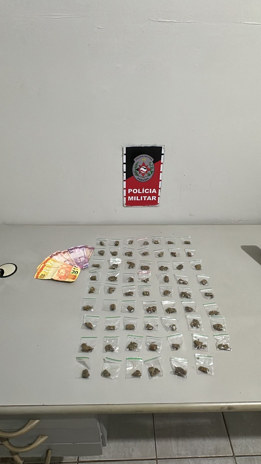 Os policiais realizavam policiamento no bairro de Tibiri II, quando receberam a denúncia de que um indivíduo estaria vendendo drogas na localidade. Rapidamente, a equipe policial foi até o local e constatou a intensa movimentação do tráfico de entorpecentes. Na abordagem ao suspeito foi encontrado R$ 70,00 reais, em espécie, e algumas porções de maconha, momento em que a sua mãe presenciou a abordagem e solicitou aos policiais que entrassem em sua residência e realizassem uma busca no quarto do suspeito, local onde foi encontrado o restante do material apreendido.