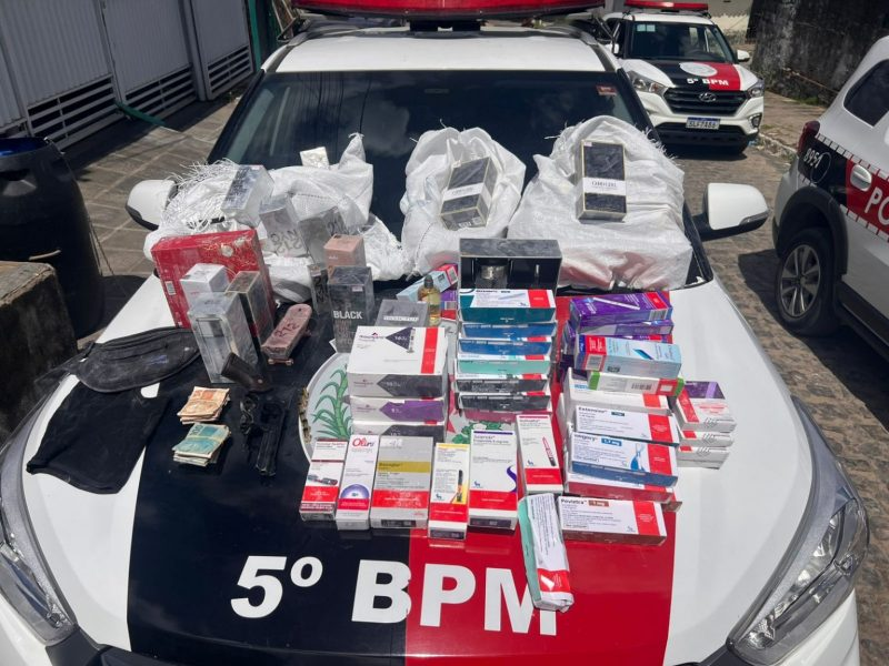 Formada por quatro pessoas, a quadrilha foi interceptada por policiais do 5º Batalhão logo após assaltar uma farmácia no bairro de Mangabeira, na zona sul da Capital. Com os suspeitos, foram apreendidos uma arma de fogo, um carro roubado e diversas canetas emagrecedoras, além de outros produtos levados durante os crimes.