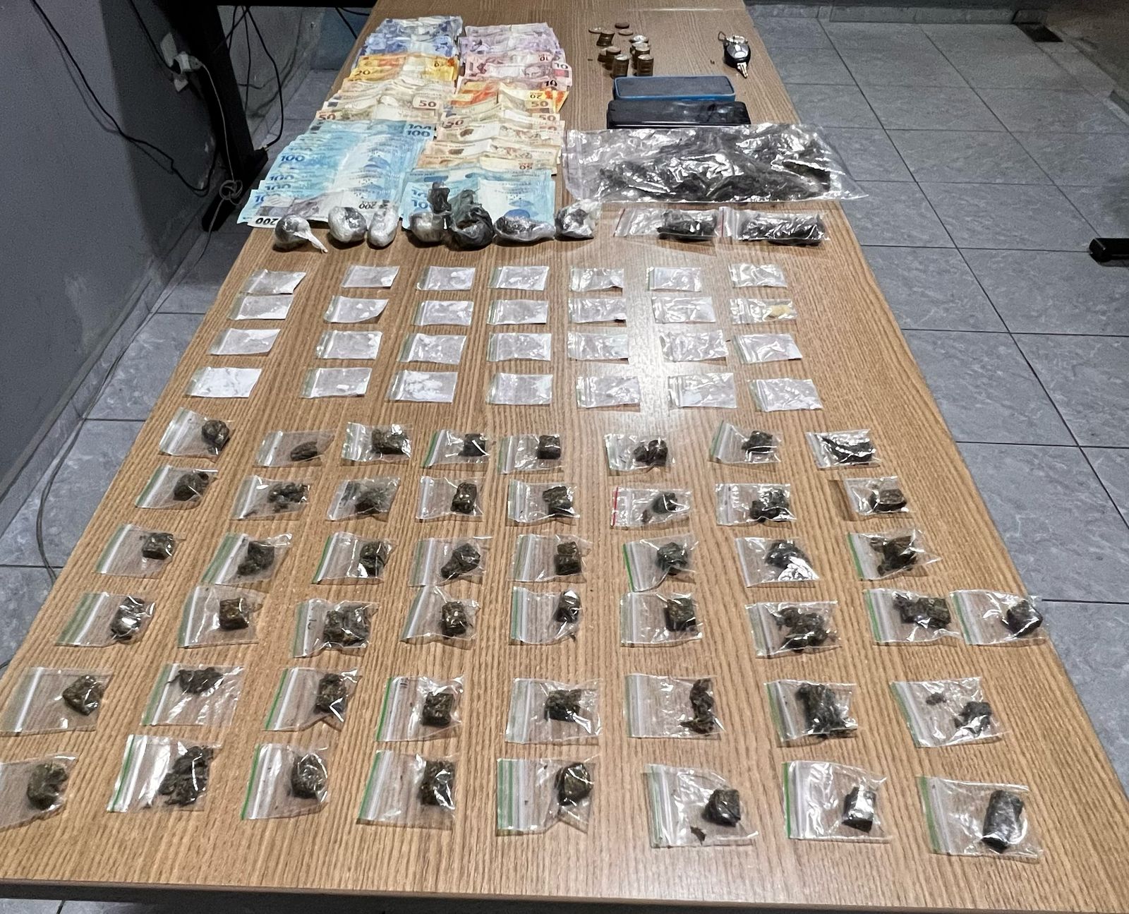 De acordo com o comando da unidade, a PM chegou até a droga após o atendimento de denúncias na região. Ninguém foi preso. Já no bairro das Cidade, dois acusados foram presos com mais de 80 porções de maconha, cocaína, e mais de R$ 3 mil em dinheiro. Ainda conforme o Rotam, um dos presos já tinha passagem criminal. A abordagem à dupla ocorreu quando os suspeitos transitavam em um veículo.