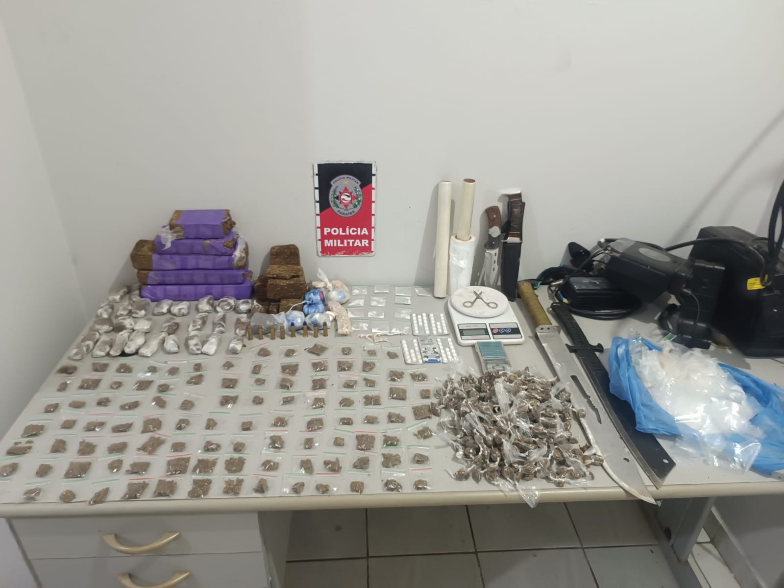 Na abordagem, foi encontrado dentro da sua pochete, munições de arma de fogo e maconha, já na sacola arremessada foi encontrado diversas drogas. Na residência que servia como apoio e ponto de tráfico de drogas foram encontrados tabletes de maconha, cocaína, crack, comprimidos de Artane, embalagens plásticas para acondicionar drogas e balanças de precisão.