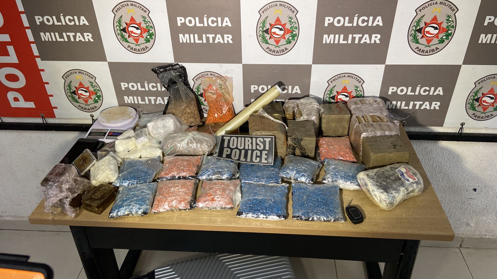 A equipe policial estava em rondas no bairro do Bessa quando recebeu informações de que um veículo estaria fazendo entrega de drogas próximo ao antigo Aeroclube. Nas diligências, visualizou um casal no veículo e, na abordagem aos suspeitos, o homem informou que toda a droga estaria em sua residência. Na residência dele, foi encontrada grande quantidade de drogas, como: cocaína, maconha, êxtase, haxixe, duas balanças de precisão e R$ 4.960,00, em espécie.