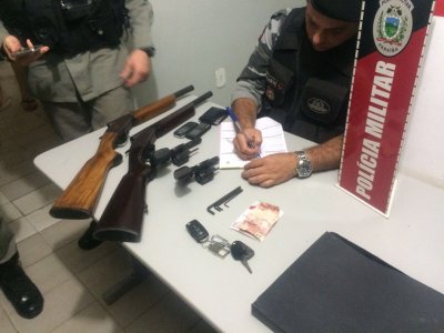 A Polícia Militar prendeu cinco suspeitos armados com espingardas e revólveres, no fim da noite desse sábado (4), durante abordagem a um táxi, no bairro Lagoa dos Patos, na zona rural do município de Sousa, Sertão do Estado.