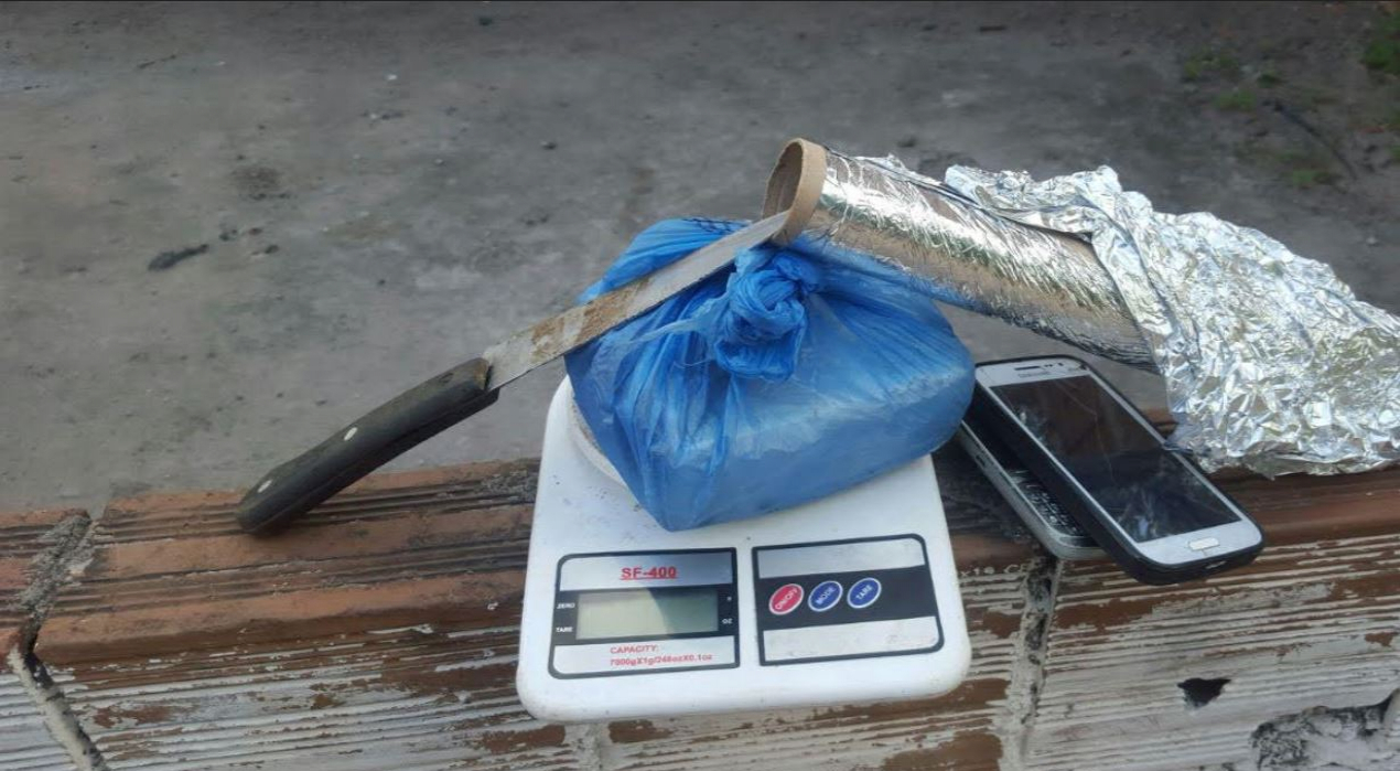 O grupo foi surpreendido por policiais da Rádio Patrulha do 7º Batalhão, que realizavam rondas na comunidade e desconfiaram da atitude dos suspeitos quando perceberam a presença da polícia no local. Os policiais realizaram uma abordagem e identificaram que os suspeitos estavam consumindo drogas. Foi realizada uma averiguação na casa onde eles estavam e foram encontrados as drogas, a balança de precisão e o material para embalar entorpecentes. Duas motos que estavam no local também foram apreendidas e conduzidas para a Companhia de Trânsito (CPRV), pois os PMs verificaram que os lacres das placas estavam rompidos.