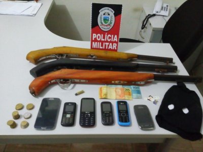 Policiais militares da 1ª Companhia Independente prenderam, na madrugada desta segunda-feira (23), Severino Bezerra de Lima. O suspeito é foragido do sistema penitenciário e com ele foram apreendidas três espingardas calibre 12, vários celulares e um capuz. O detido e os materiais apreendidos foram encaminhados à Delegacia de Polícia Civil para autuação.