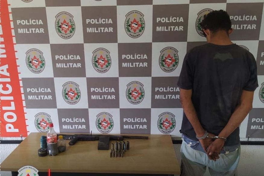 Chegando no local, os policiais prenderam o suspeito e apreenderam uma espingarda de fabricação caseira e munições.